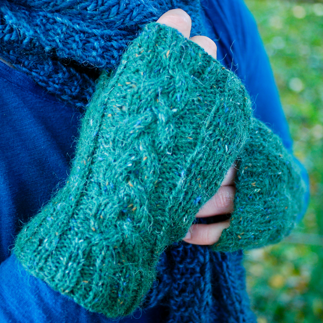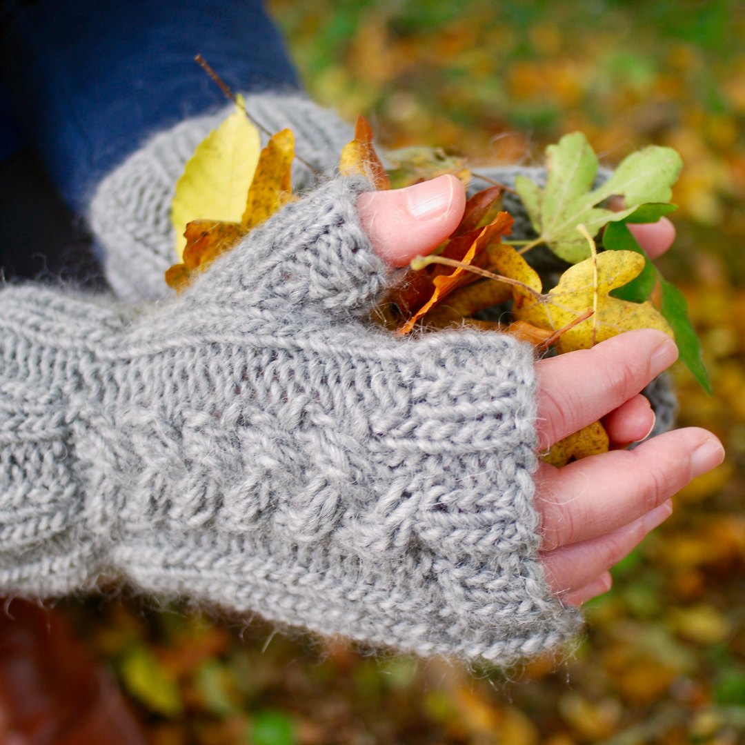 DK Cable Fingerless Mitts, one size, adult